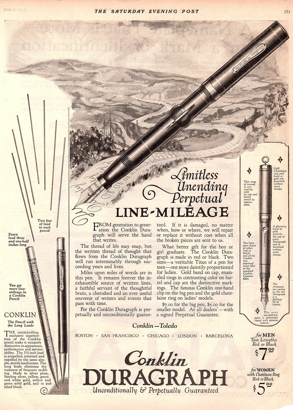 Conklin has been shaping the art of writing since 1897. From Roy Conklin’s groundbreaking Crescent Filler™, the first practical self-filling fountain pen, to modern reimagined classics, the brand is built on innovation, craftsmanship, and timeless design. Celebrated authors like Mark Twain once endorsed Conklin pens for their reliability and elegance, a legacy that continues today. Whether for writing, collecting, or gifting, Conklin pens bring a touch of history and sophistication to every word you put on paper...